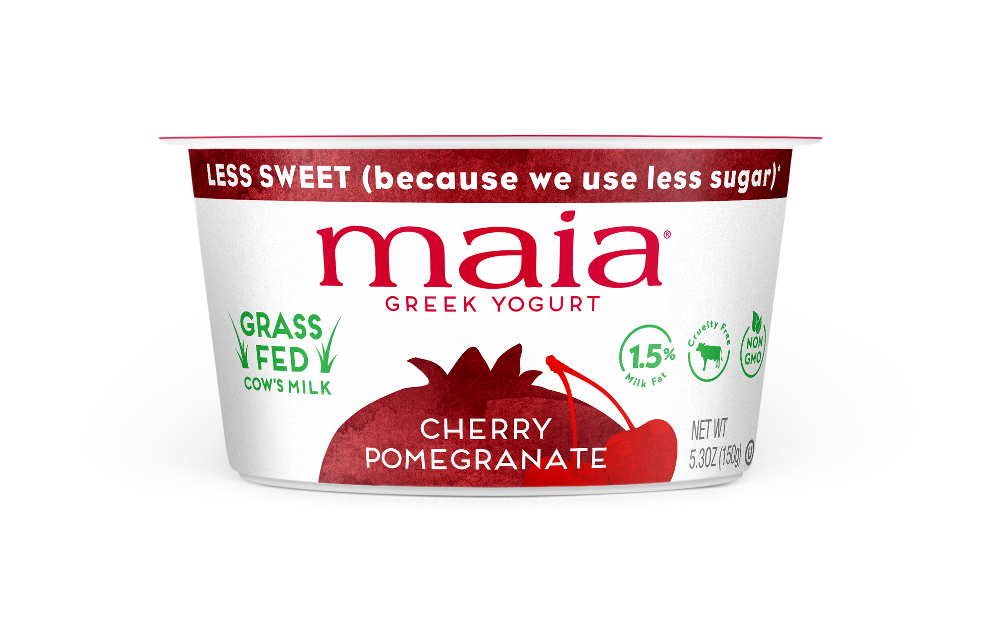 8 cups of Maia Cherry Pomegranate. An iconic duo that nobody expected. Real pomegranate and cherry pieces blended into our grass-fed cow’s milk yogurt for a sweet treat (without the added sugar).